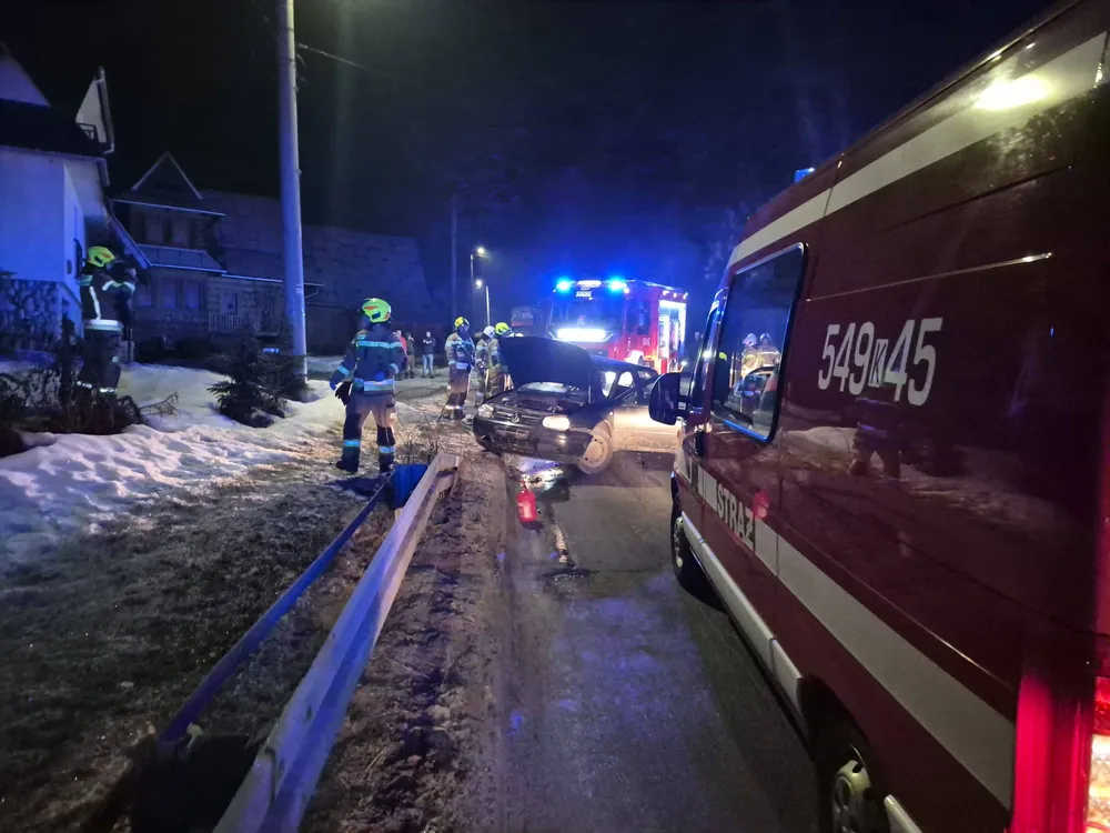 Jak przekazała ochotnicza straż pożarna z Poronina, kierujący samochodem osobowym stracił panowanie nad pojazdem, wypadł z drogi i uderzył w ogrodzenie. Auto jechało z dużą prędokością po śliskiej nawierzchni. W wyniku zdarzenia ranne zostały dwie młode osoby, które przewieziono do szpitala. Siła uderzenia była tak duża, że z ogrodzenia nic nie zostało, a samochód nadaje się tylko do kazacji.