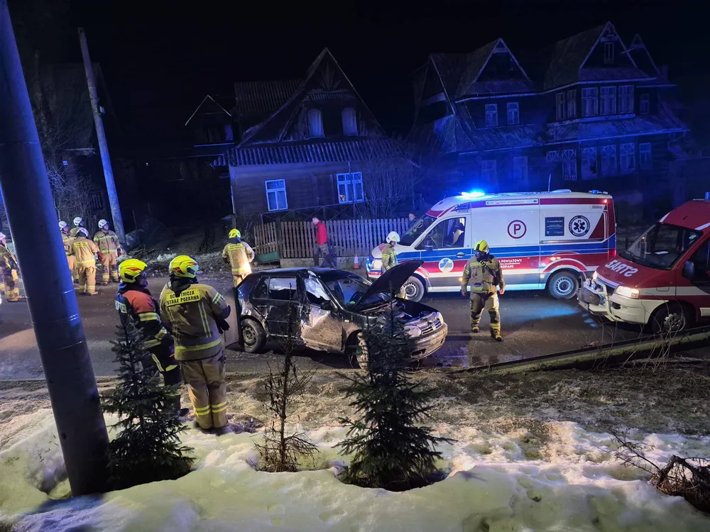 W nocy z 28 lutego na 1 marca w miejscowości Suche w gminie Poronin doszło do poważnego zdarzenia drogowego. Samochód osobowy wypadł z drogi i uderzył w ogrodzenie prywatnej posesji. Dwie osoby podróżujące autem zostały ranne i trafiły do szpitala.