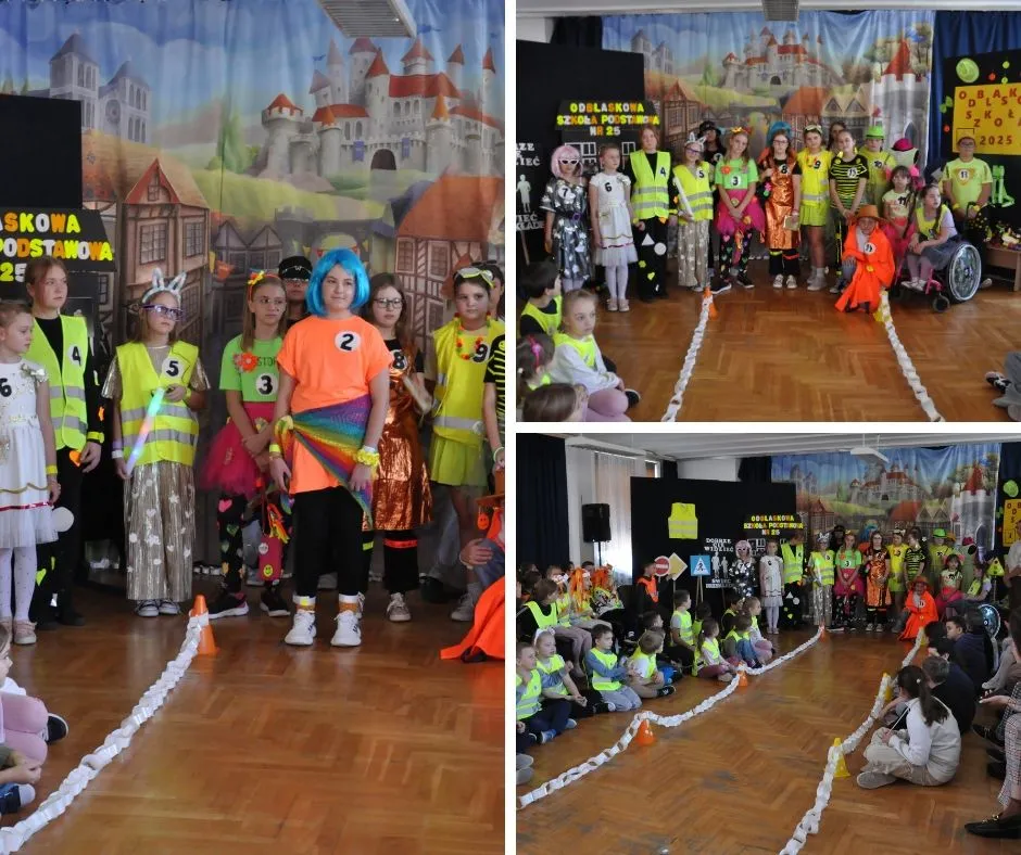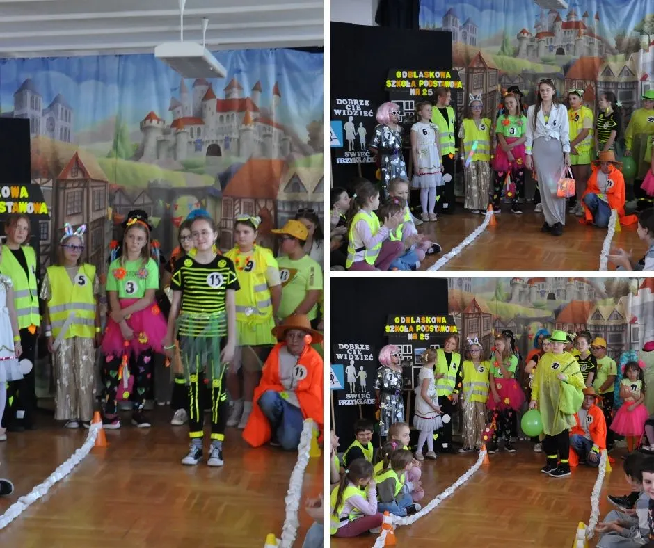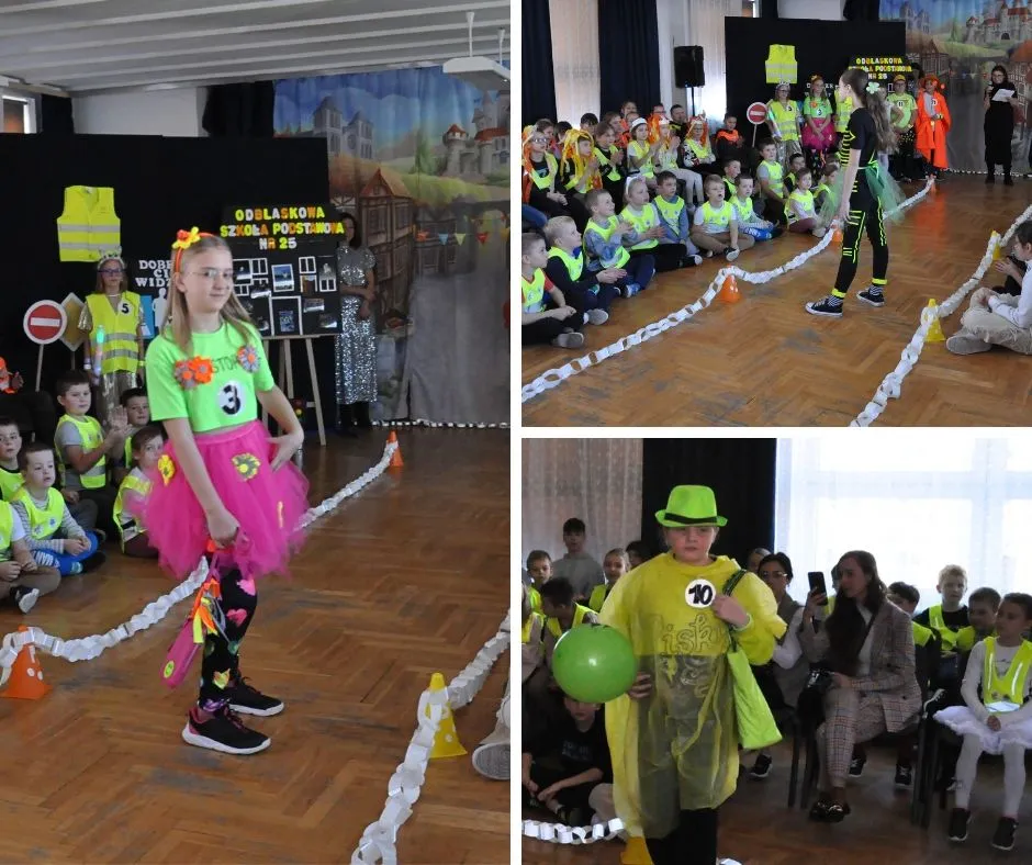 Wydarzenie otworzył „Pokaz Odblaskowej Mody”. Uczniowie zaprezentowali stroje ozdobione elementami odblaskowymi, podkreślając, jak ważna jest widoczność pieszych po zmroku. Pokaz połączył kreatywną formę z jasnym przekazem dotyczącym bezpieczeństwa na drodze.
