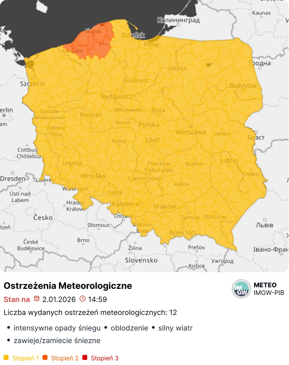 Ostrzeżenie 1. stopnia (żółte) nie brzmi groźnie, ale w praktyce oznacza warunki, które potrafią „wywrócić” poranny dojazd do pracy i sparaliżować dłuższą trasę. Mechanizm jest prosty: po opadach deszczu ze śniegiem i mokrego śniegu nawierzchnie zostają wilgotne, a potem temperatura spada poniżej zera. Efekt to warstwa lodu, która pojawia się miejscami – i właśnie dlatego bywa zdradliwa.