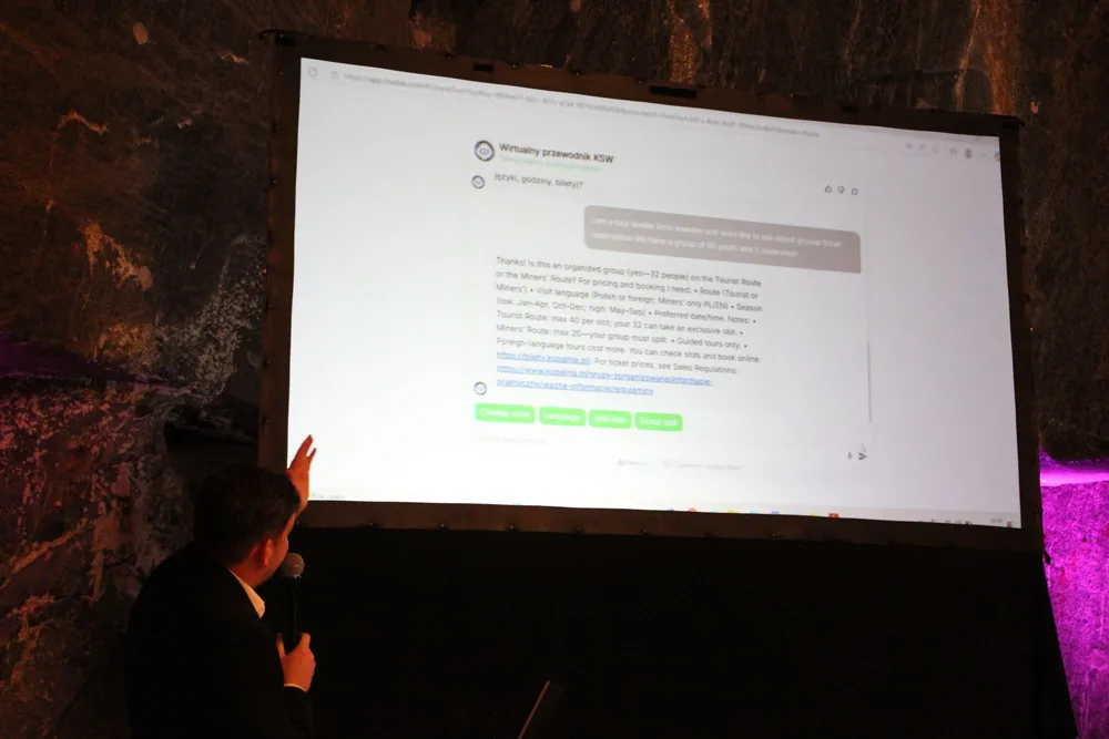 W odpowiedzi na rosnący ruch turystyczny kopalnia dziewięć miesięcy temu wdrożyła nowoczesne rozwiązania cyfrowe w zakresie obsługi odwiedzających. Kluczowym elementem zmian stała się współpraca z firmą ChatLab oraz uruchomienie chatbota opartego na sztucznej inteligencji, który przejął część zadań informacyjnych.