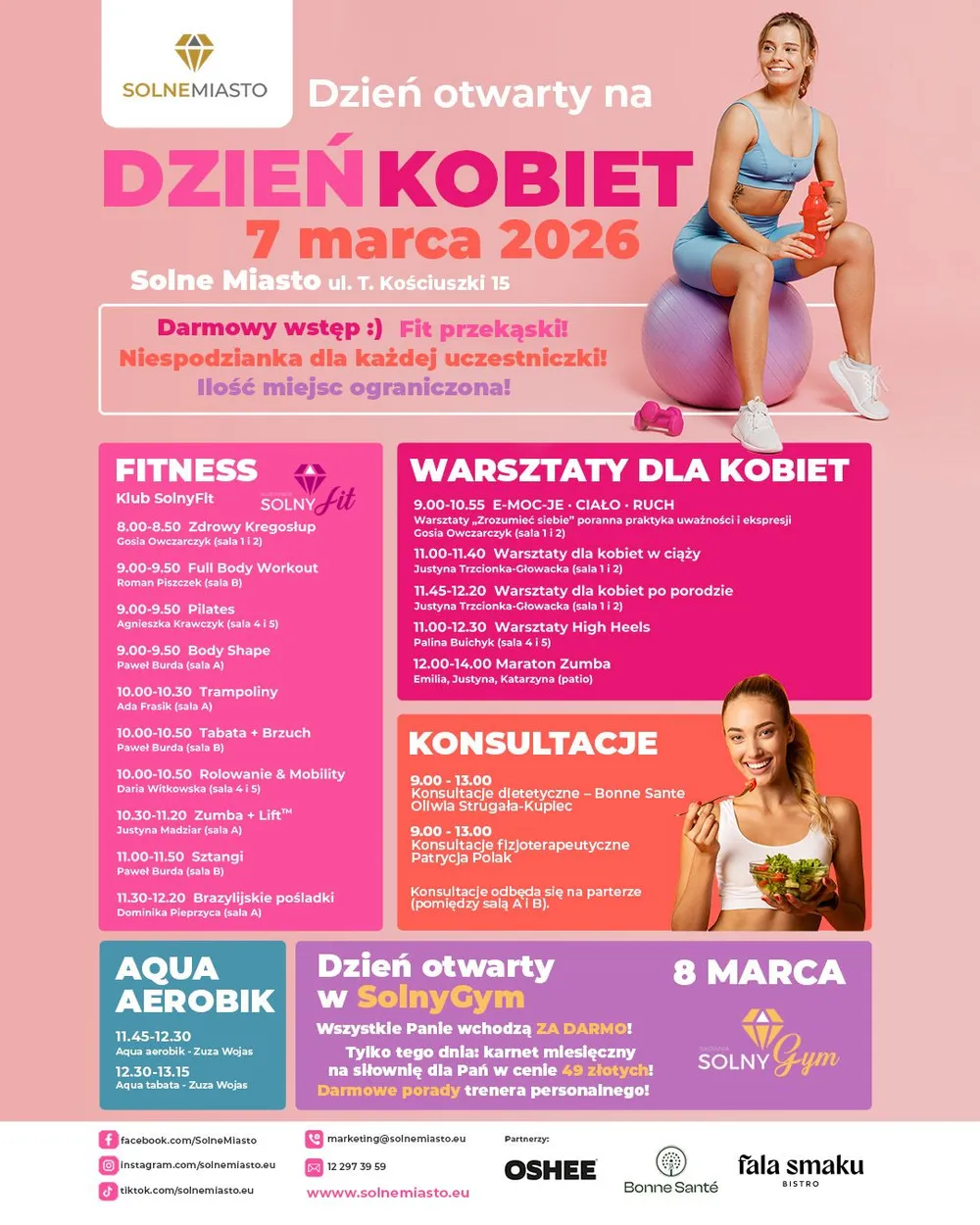 Organizatorzy zapowiadają również drugi dzień wydarzenia. W niedzielę 8 marca dzień otwarty odbędzie się w strefie SolnyGym. Wszystkie panie będą mogły wejść na siłownię bezpłatnie. Tylko tego dnia dostępna będzie także promocyjna oferta karnetu miesięcznego w cenie 49 złotych oraz możliwość skorzystania z darmowych porad trenera personalnego.