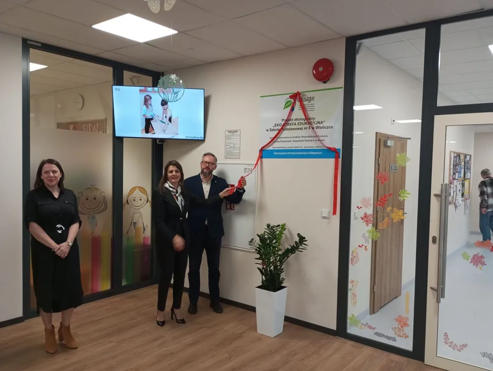 15 października 2025 r. w SP nr 6 w Wieliczce odbyło się uroczyste otwarcie nowoczesnej infrastruktury ekologicznej powstałej w ramach projektu „EKO-STREFA EDUKACYJNA”, współfinansowanego przez Wojewódzki Fundusz Ochrony Środowiska i Gospodarki Wodnej w Krakowie.