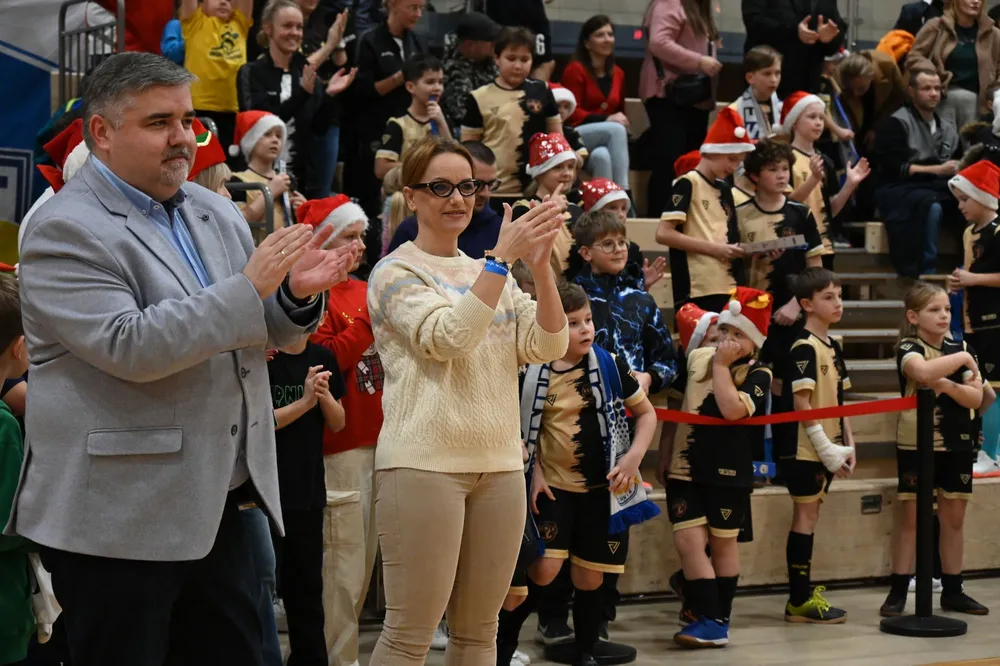 Po zakończonym spotkaniu na najmłodszych fanów czekała wyjątkowa atrakcja — wizyta Świętego Mikołaja. W rozdawaniu upominków pomagała m.in. burmistrz Bochni Magdalena Łacna, wprowadzając do hali dodatkową porcję świątecznej atmosfery.