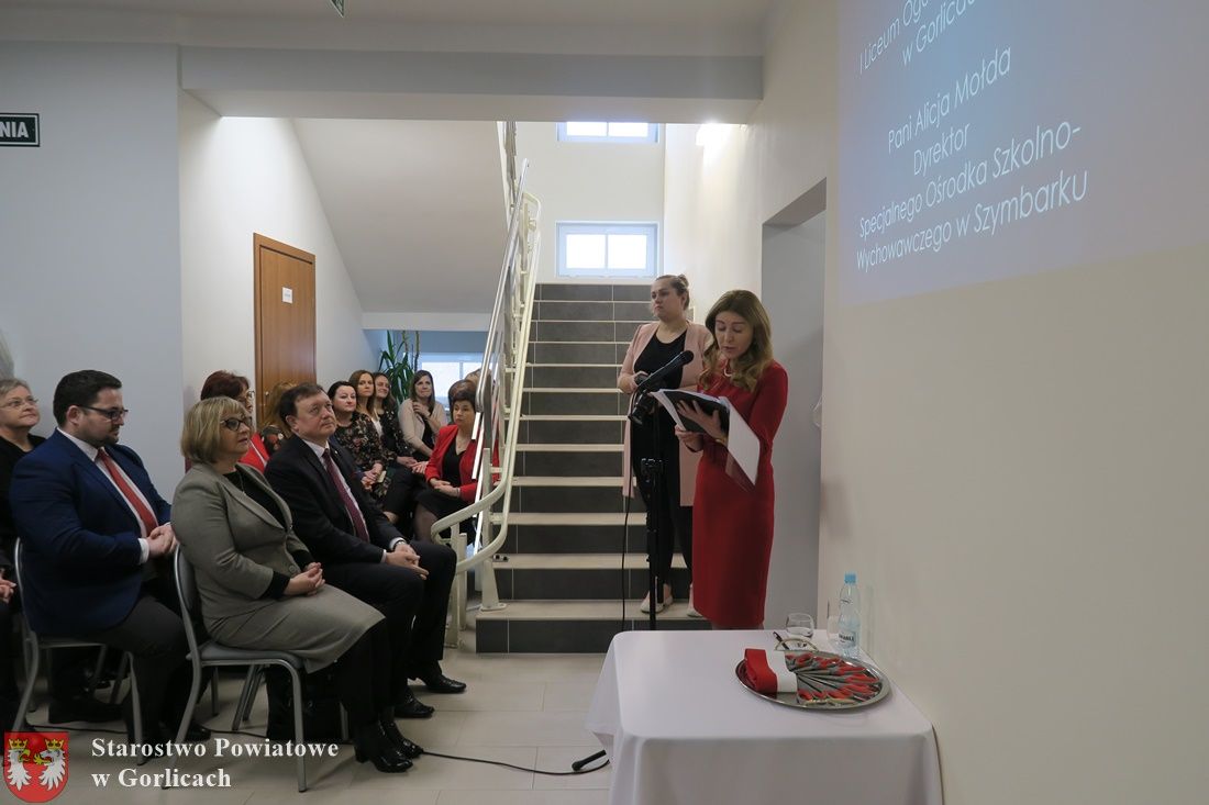 Gości powitała Beata Mikruta-Kawa, dyrektor Poradni. Na otwarcie placówki przybyli m.in. posłowie: Barbara Bartuś i Wiesław Janczyk, starosta gorlicki Maria Gubała, Przewodniczący Rady Powiatu Gorlickiego Mirosław Waląg, członkowie Zarządu Powiatu Gorlickiego Jerzy Nalepka i Adam Urbanek, Burmistrz Miasta Gorlice Rafał Kukla, Wiceprzewodniczący Rady Miasta Gorlice Ryszard Ludwin, dyrektor Wydziału Edukacji, Kultury, Sportu i Promocji Powiatu Tadeusz Mikrut, dyrektor Wydziału Rozwoju i Inwestycji Daniel Markowicz, p.o. Komendanta Powiatowego Policji w Gorlicach podinsp. Dorota Tokarz, radni Powiatu Gorlickiego i Miasta Gorlice, dyrektorzy szkół oraz placówek edukacyjnych i wychowawczych z terenu powiatu gorlickiego. Poświęcenia obiektu dokonał .