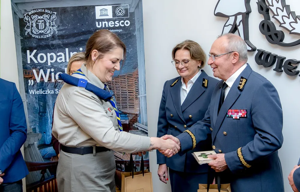 Współpracę ZHP z Kopalnią Soli „Wieliczka” S.A. przypieczętowało uroczyste podpisanie umowy. Ze strony ZHP dokument podpisały hm. Anna Hałatek (komendantka Hufca ZHP Wieliczka) oraz phm. Klaudia Głuszczak (zastępczyni komendantki ds. wsparcia metodycznego). Kopalnię reprezentowali Marian Leśny (prezes Zarządu) i Łukasz Sadkiewicz (członek Zarządu ds. ekonomicznych, inicjator ulokowania siedziby Hufca w przestrzeni kopalni).