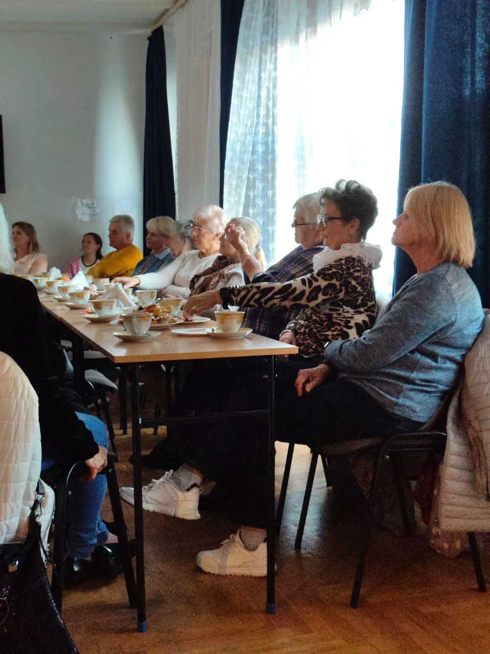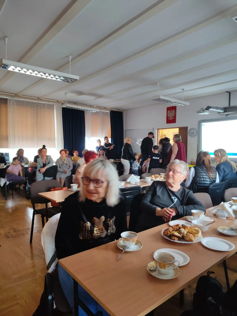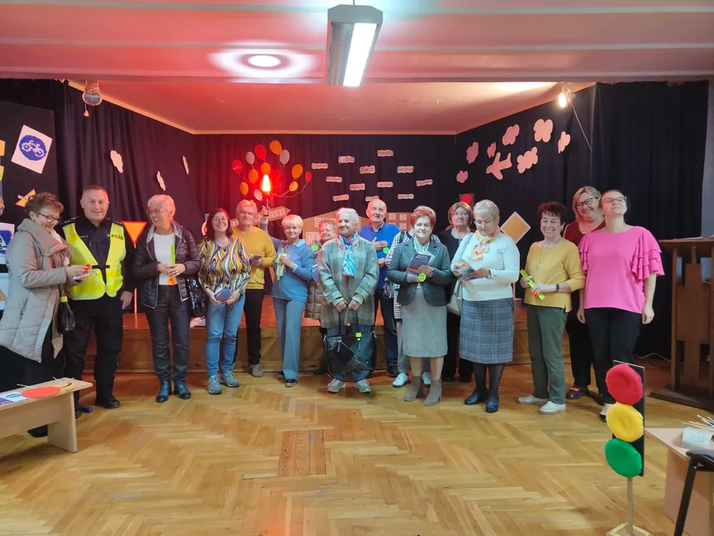 Po części artystyczno-edukacyjnej przyszedł czas na praktykę. Każdy z uczestników otrzymał elementy odblaskowe, by w codziennych spacerach i powrotach do domu być lepiej widocznym. Wspólna rozmowa przy herbacie zamieniła się w międzypokoleniową lekcję uważności – seniorzy dzielili się doświadczeniami, a uczniowie dopowiadali, co zapamiętali z zajęć w szkole.