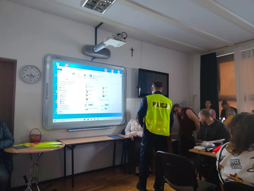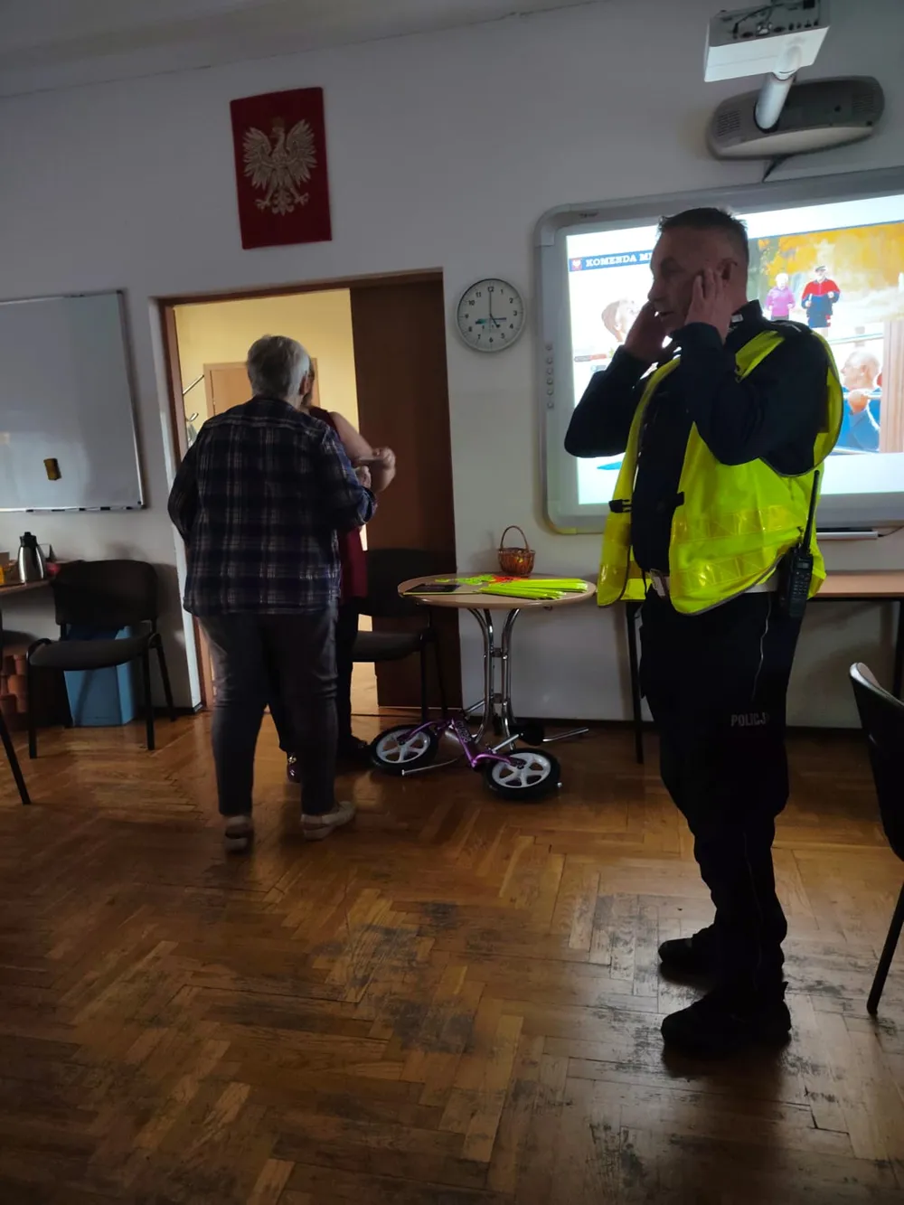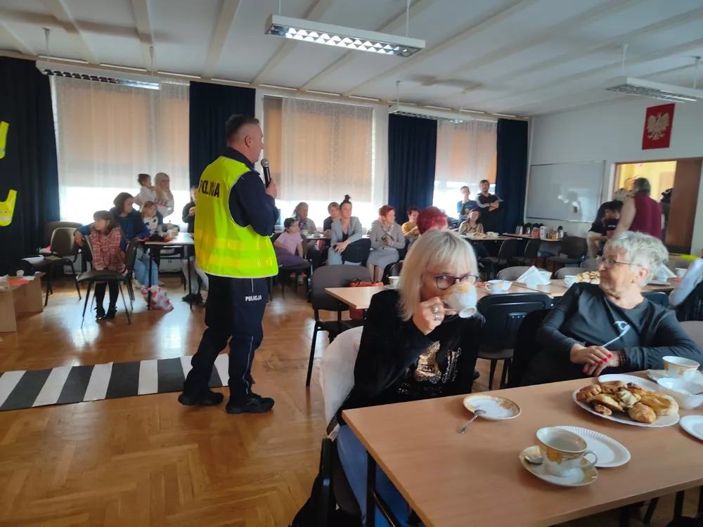 Ciepła herbata, szkolna scena i konkretne wskazówki na jesienne wieczory – tak wyglądało spotkanie, które połączyło dwa pokolenia w jednym celu: by po zmroku każdy wracał do domu bezpiecznie.