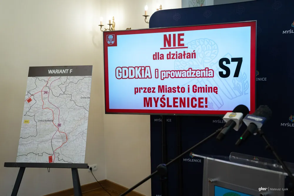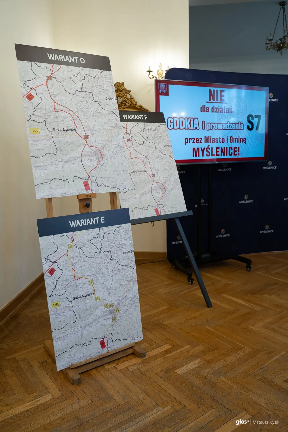 We wtorek, 4 listopada, dzień po prezentacji nowych sześciu wariantów przebiegu projektowanego odcinka S7 Kraków — Myślenice, swoje oficjalne stanowisko przedstawiły Myślenice. Burmistrz Jarosław Szlachetka zorganizował własną konferencję prasową, na której jasno powiedział, że gmina Myślenice nie akceptuje żadnego z przedstawionych przebiegów. Podkreślił, że cała idea „nowej Zakopianki” miała polegać na wyprowadzeniu ciężkiego ruchu tranzytowego poza centrum gminy, a to, co pokazano 3 listopada, w praktyce sprowadza ten ruch z powrotem na tereny już dziś przeciążone.