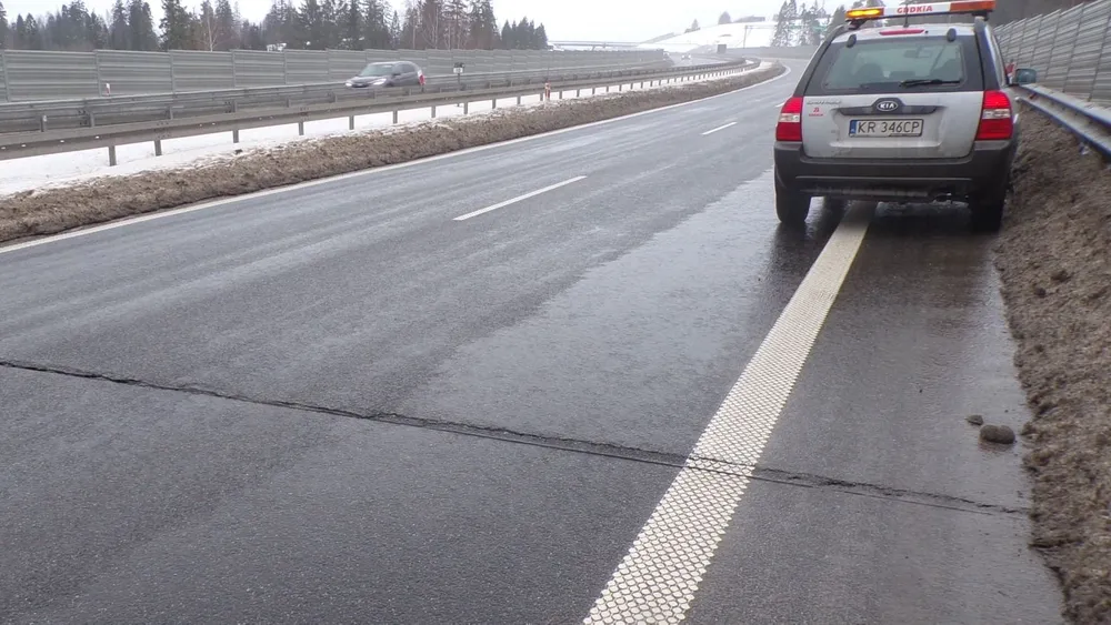 GDDKiA podkreśla, że pęknięcia powodują niewielką nierówność nawierzchni. To właśnie ona — choć na pierwszy rzut oka może wyglądać „niegroźnie” — może wpływać na komfort i bezpieczeństwo jazdy, zwłaszcza przy wyższej prędkości.