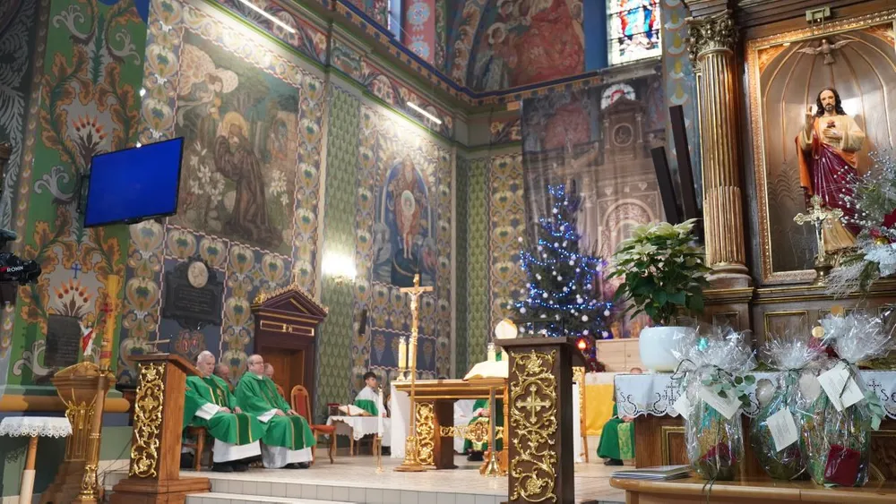 Po poświęceniu polichromii Ksiądz Kardynał Stanisław Dziwisz przewodniczył uroczystej Mszy Świętej jubileuszowej. W wygłoszonej homilii nawiązał do siedmiusetletniej historii parafii i miasta, podkreślając rolę wiary jako trwałego fundamentu życia wspólnoty oraz źródła jej tożsamości i ciągłości na przestrzeni wieków.