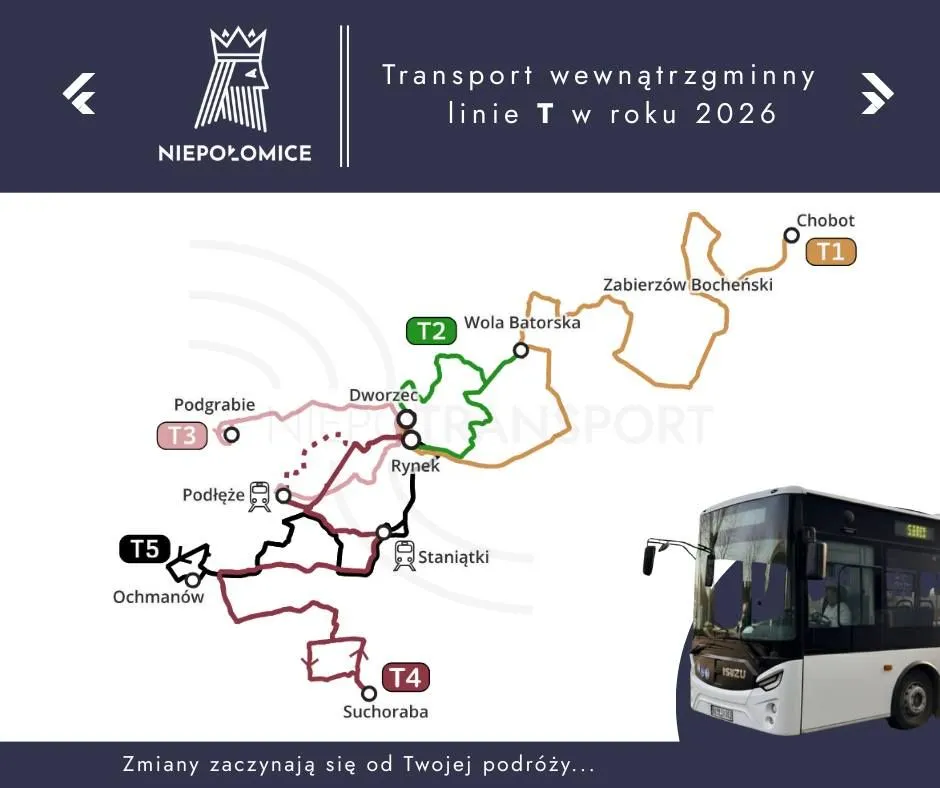 Od 1 stycznia 2026 roku w Mieście i Gminie Niepołomice obowiązuje nowa organizacja transportu publicznego.