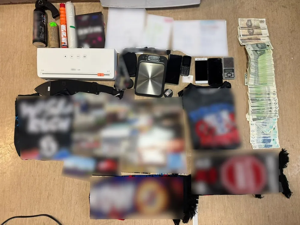 Podczas działań zatrzymano siedmiu mężczyzn w wieku od 27 do 40 lat. Policjanci przeszukali użytkowane przez nich mieszkania oraz pojazdy. W trakcie czynności zabezpieczono znaczne ilości narkotyków, a także maczety, race dymne, telefony komórkowe, laptopy oraz gotówkę. W jednym z krakowskich mieszkań ujawniono również przedmiot przypominający broń palną, który został przekazany do dalszych badań balistycznych.