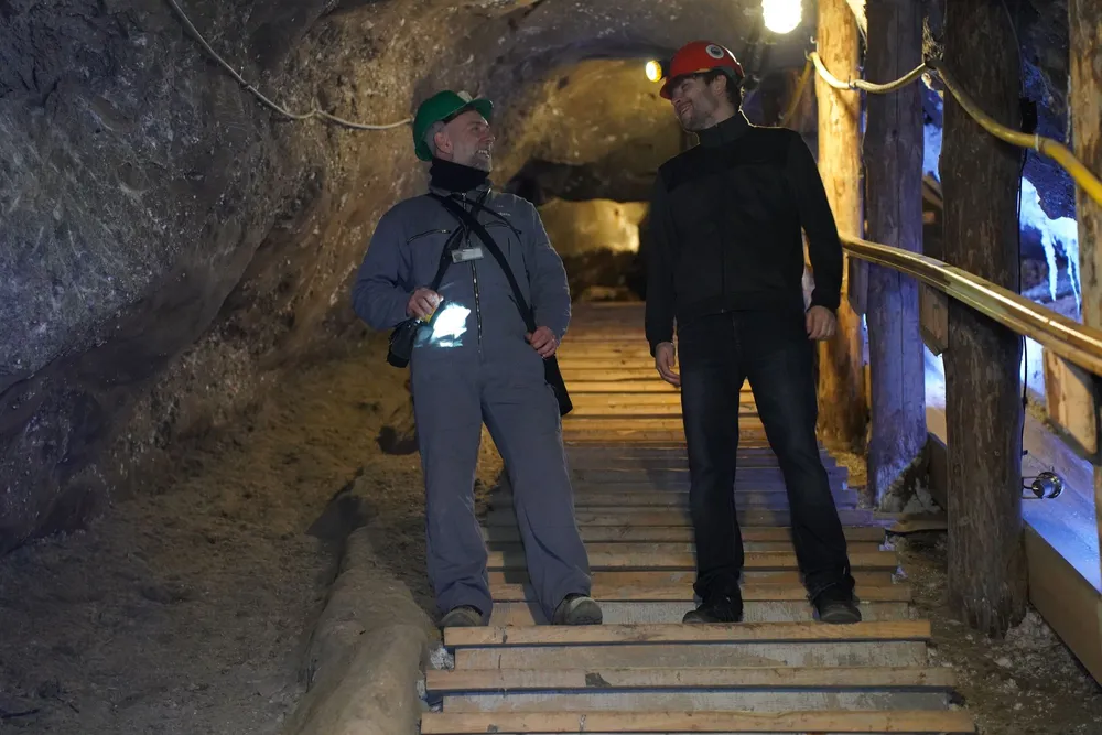 „Człowiek nie odkrywa nowych lądów, jeśli nie ma odwagi stracić z oczu brzegu” — powiedział kiedyś André Gide. Pierwszy dzień marca przyniósł mi coś zupełnie innego niż zwykła poranna kawa i gazeta. Razem z Mateuszem z redakcji — odpowiedzialnym za niebanalne zdjęcia — i panem Jackiem, przewodnikiem, który zna kopalnię jak własną kieszeń, ruszyliśmy w stronę szybu Sutoris, gdzie zaczyna się trasa „Solny Świadek”. Już w tym momencie wiedziałem, że przede mną godziny wypełnione historią, legendami, nauką i podziemną przygodą, a moje serce biło szybciej nie tylko z ekscytacji, ale też z lekkiej obawy, ile razy jeszcze uderzę w sufit z racji moich 190 centymetrów wzrostu i czy kondycyjnie dam radę.