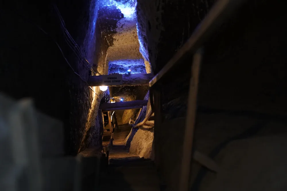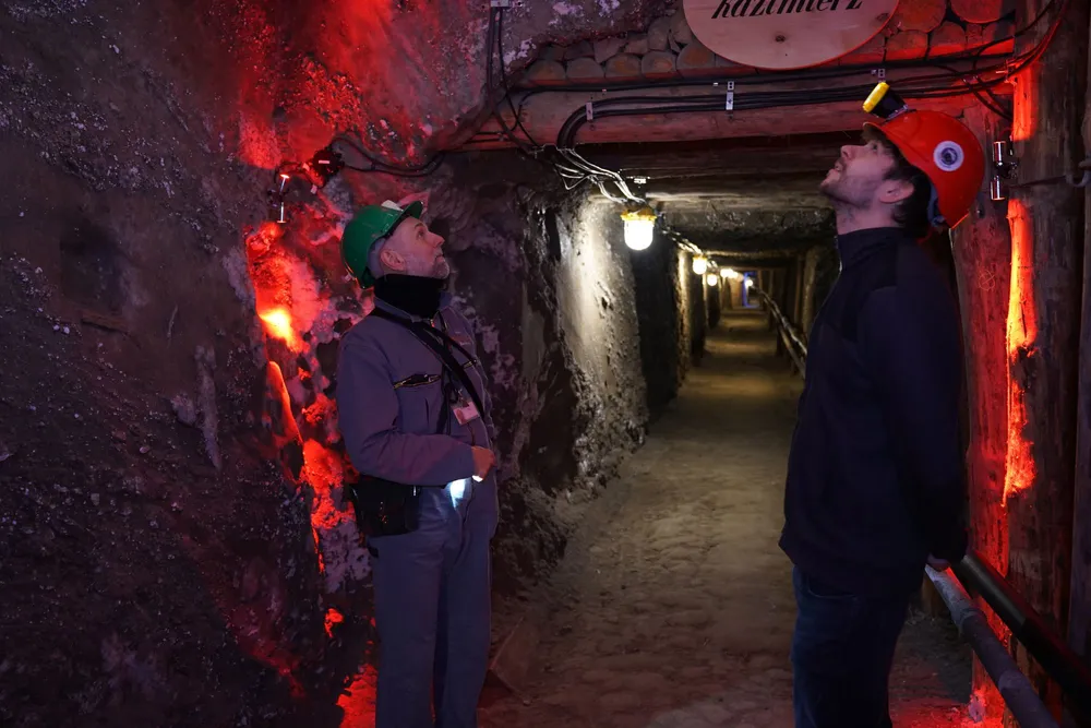 Już po kilku metrach kopalnia przypomniała mi, kto tu rządzi — przyfasowałem w sufit. Wniosek prosty: kask z głowy nie schodzi, nawet jeśli czasem przeszkadza w stylowym selfie. To jednak tak naprawdę nie było ważne. Każde skrzypnięcie drewna, każdy cień na błyszczących solnych ścianach i lekki chłód pod ziemią sprawiały, że serce biło szybciej. Próbowałem też nie myśleć o tym, jak wyglądałaby moja mina, gdybym przypadkiem zgubił lampę — przecież w takich ciemnościach nawet komar byłby monstrum.