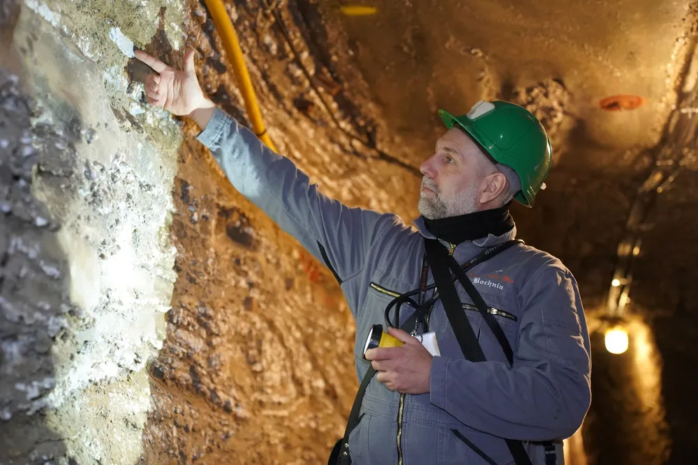 Na poziomie Danielowiec (~70 m) zobaczyliśmy pierwsze komory solne. Pan Jacek wyjaśnił, jak wyglądało wydobycie w średniowieczu i jakie odmiany soli były najbardziej cenione: biała, różowa, kryształowa, a nawet sól o intensywnie bursztynowym odcieniu. Każda miała inne zastosowanie — od przyprawy, przez lekarstwo, po symbol statusu społecznego. Zauważyłem też, że sól w niektórych miejscach wyglądała jak miniaturowe dzieła sztuki, które aż prosiły się, by niechcący wyjść z kopalni w kieszeni.