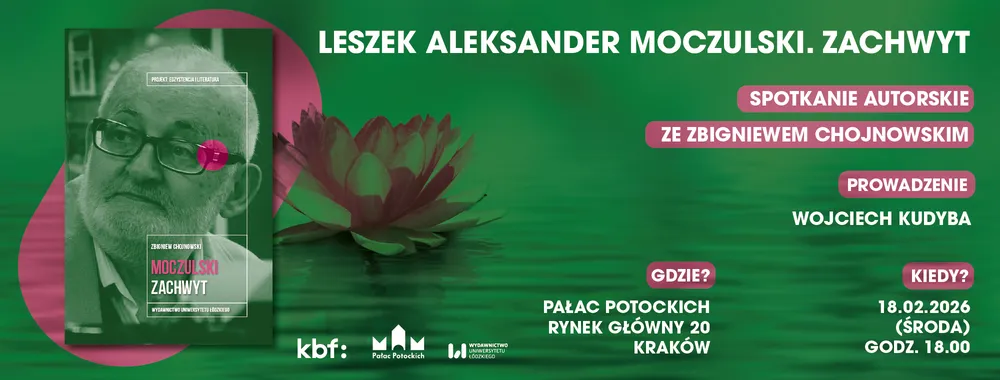 W środę 18 lutego 2026 r. o godz. 18:00 w Pałacu Potockich (Rynek Główny 20 w Krakowie) odbędzie się spotkanie autorskie z prof. Zbigniewem Chojnowskim wokół książki „Moczulski. Zachwyt”.