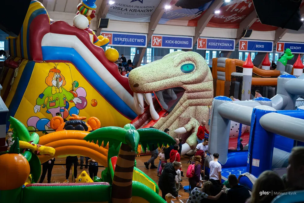 W niedzielę 23 listopada Hala Wisły w Krakowie zamieniła się w prawdziwe królestwo dmuchańców. Setki dzieci wraz ze swoimi opiekunami spędzały czas pełen ruchu, śmiechu i radości, a rodziny mogły cieszyć się wspólną zabawą w kolorowej, pełnej energii przestrzeni. Wydarzenie zorganizowała Fundacja „Zróbmy Sobie Kraków”, a zapach waty cukrowej unosił się w powietrzu, podczas gdy muzyka DJ-a nadawała rytm każdemu ruchowi dzieci.