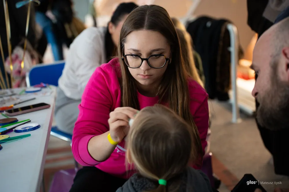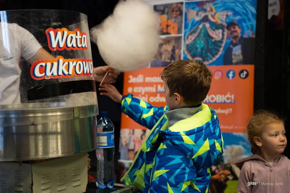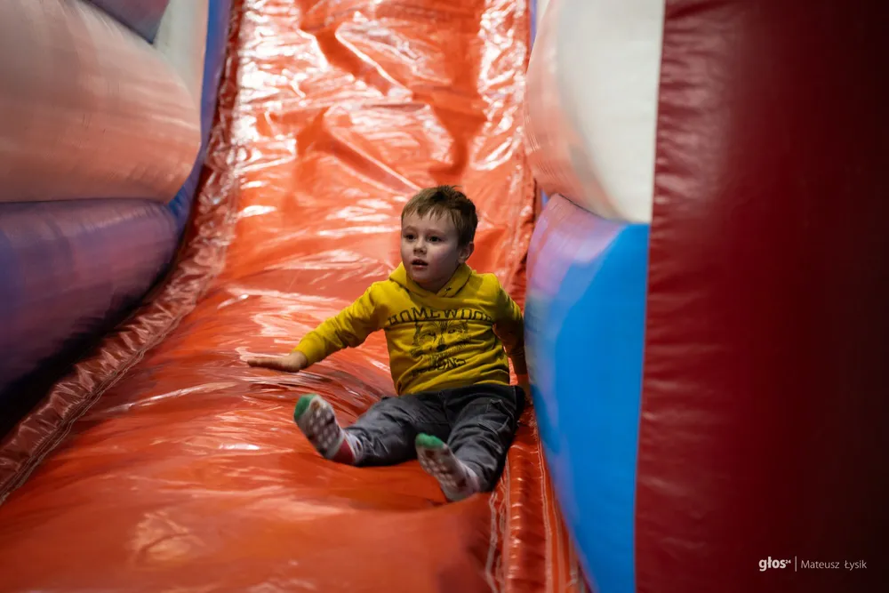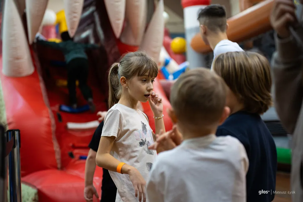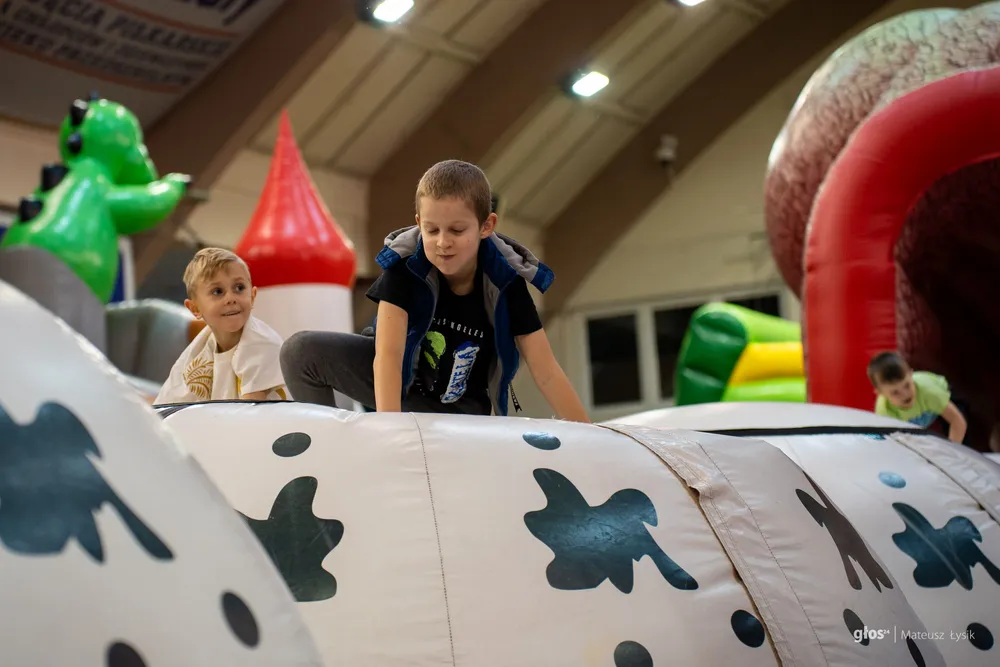 Zjeżdżalnia „Słonik” oraz place zabaw „Tygrysek” i „Smok” tworzyły miejsca, w których dzieci mogły ćwiczyć równowagę, sprawność i wyobraźnię. W powietrzu unosiły się kolorowe balony, a muzyka DJ-a nadawała rytm całej hali. Animatorki z Centrum Zabaw Akukuu czuwały nad bezpieczeństwem dzieci, prowadziły zabawy i konkursy, a każdy uczestnik miał okazję skorzystać z malowania twarzy, tatuaży brokatowych, skręcanych balonów czy darmowej waty cukrowej.