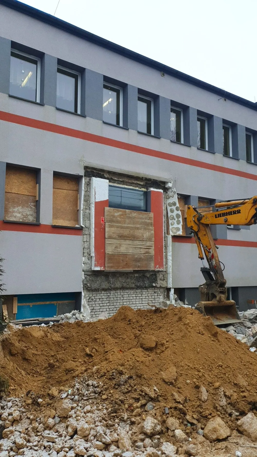 Jednocześnie rozpoczęto prace przy budowie łącznika, który połączy nowo powstający obiekt z istniejącym budynkiem szkoły, zapewniając funkcjonalne i bezpieczne skomunikowanie obu części.