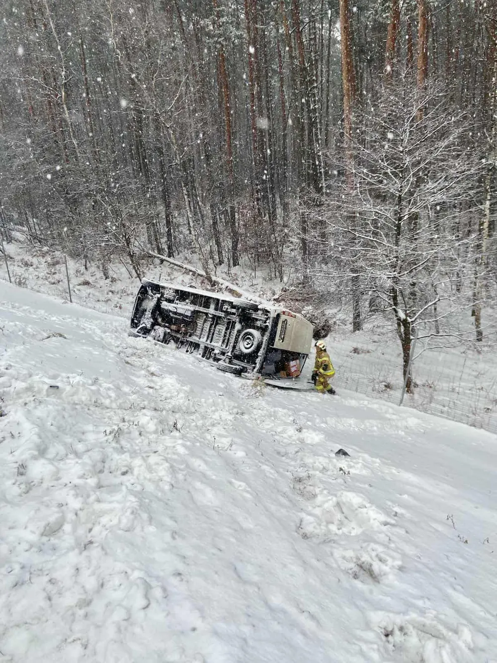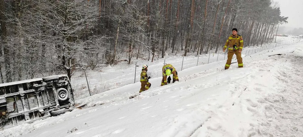 Kolejne zgłoszenie dotyczy autostrady A4. Około godz. 9:18 podano informację o zdarzeniu na 385. kilometrze (na wysokości węzła Rudno - kierunek Katowice/Kraków). Tam bus przewożący sprzęt medyczny zjechał z drogi położonej na wysokim nasypie i przewrócił się na bok. W akcji ratunkowej, w tym przeniesieniu przewożonego sprzętu, pomagali strażacy z OSP Zalas i OSP Rudno, Na miejscu działa policja oraz patrol autostradowy.