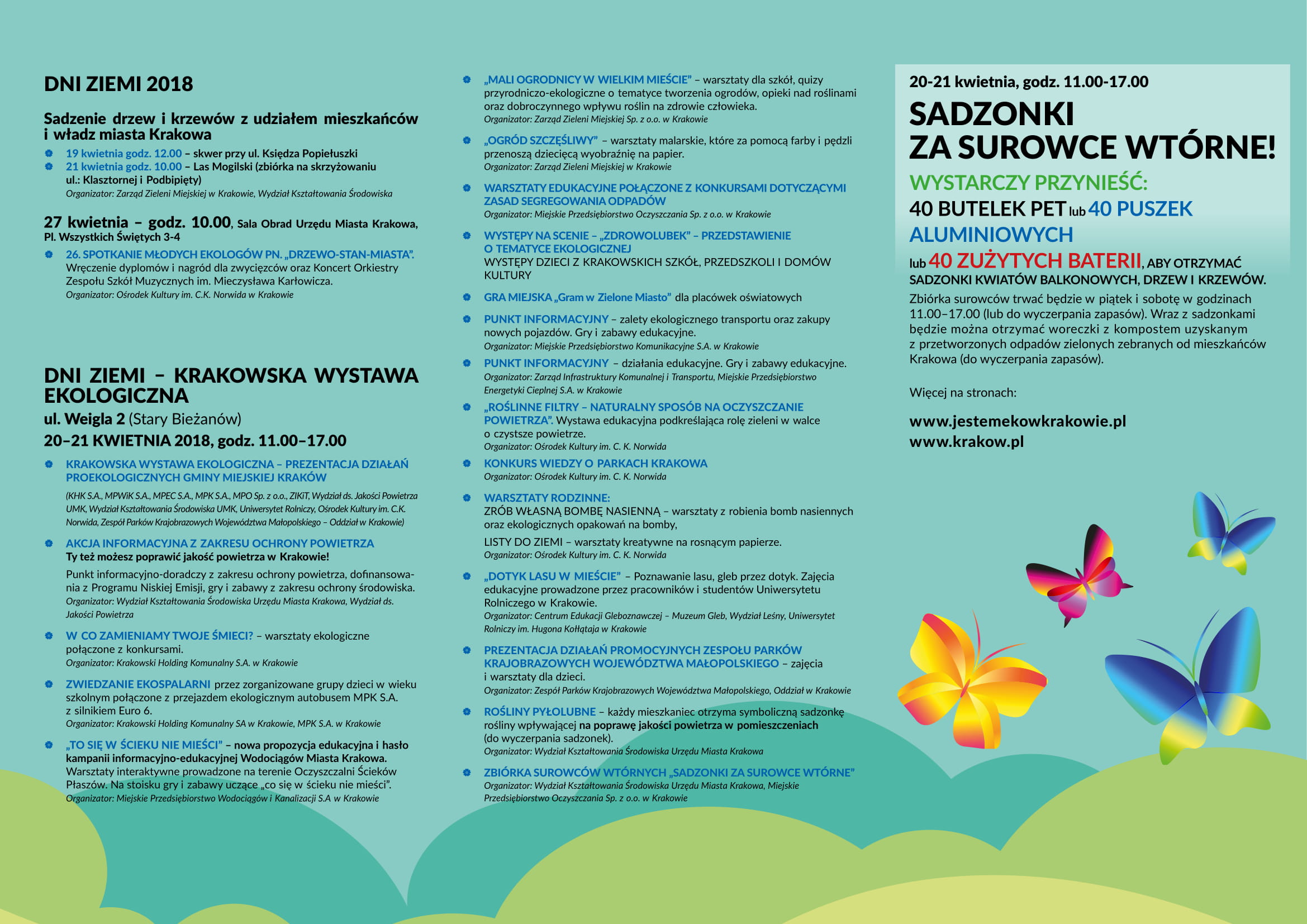 Jakie atrakcje zaplanowano na piątek i sobotę? Warsztaty ekologiczne połączone z konkursami, gry i zabawy o tematyce ekologicznej, zwiedzanie ekospalarni, zajęcia ogrodnicze, warsztaty malarskie, gry miejskie – wszystkie propozycje dla dzieci i dorosłych można znaleźć na plakacie: