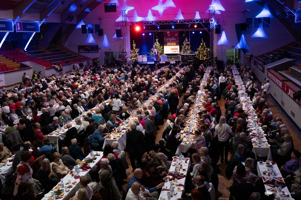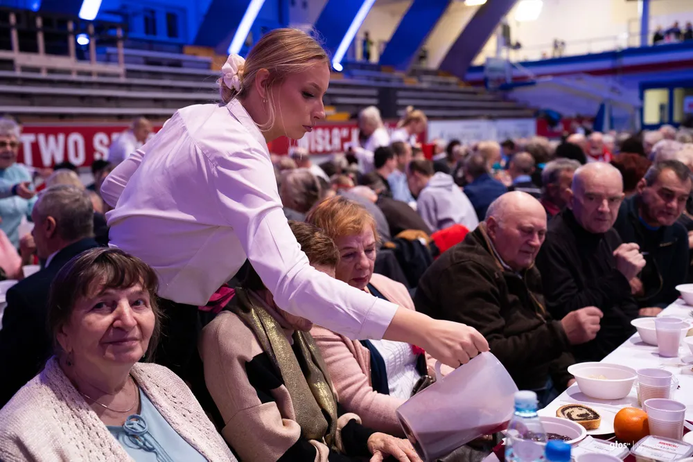 W piątkowe popołudnie, 19 grudnia, Hala Wisły w Krakowie wypełniła się wyjątkową atmosferą świąt. Blisko tysiąc osób, głównie seniorów i osób samotnych, zasiadło przy wspólnym stole, aby razem przeżywać magię Bożego Narodzenia. Od pierwszych chwil czuć było radość, serdeczność i wzruszenie – śmiech mieszał się z delikatnym szelestem opłatków i zapachem barszczu oraz pierogów.