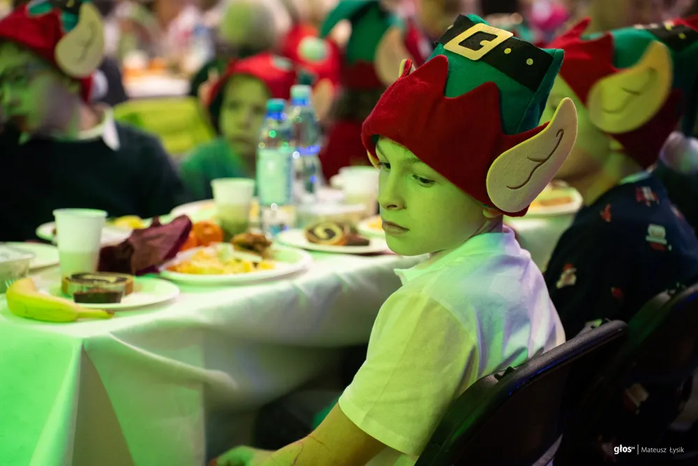 Od rana trwały przygotowania: dekorowanie stołów, dopracowywanie szczegółów programu, ustawianie nakryć i przystrajanie hali. Gdy pierwsze osoby zajęły miejsca, w powietrzu unosiła się mieszanka podekscytowania i wzruszenia. Tradycyjne dania wigilijne – barszcz z uszkami, karp, pierogi i kompot z suszu – stały się pretekstem do rozmów, wymiany uśmiechów i wspólnego świętowania.