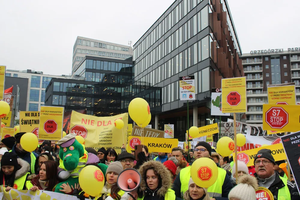 W poniedziałek 1 grudnia pod siedzibą Generalnej Dyrekcji Dróg Krajowych i Autostrad odbył się protest przeciw obecnemu kształtowi drogi S7. Na miejscu spotkaliśmy burmistrzów Wieliczki i Myślenic, którzy jasno zadeklarowali stanowiska miast.