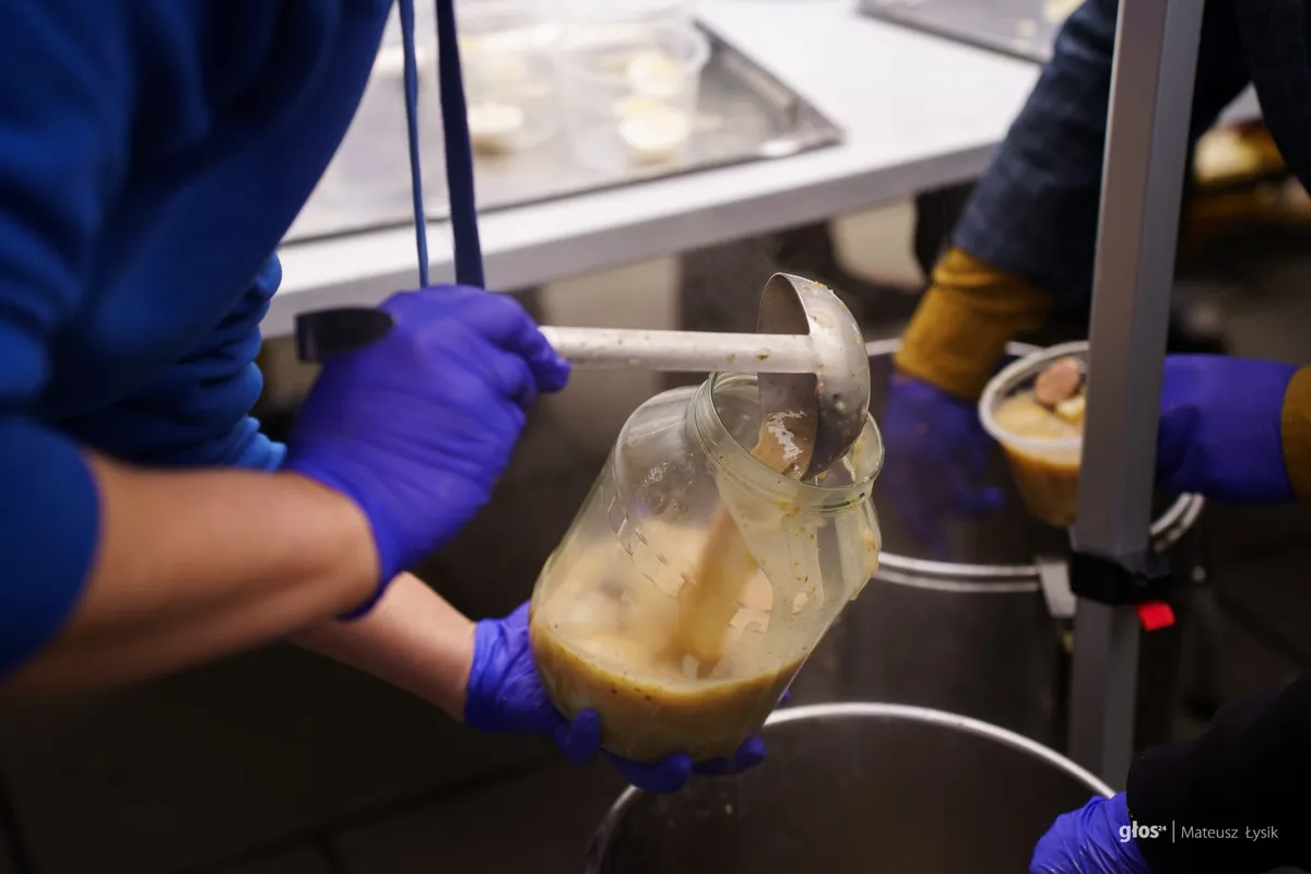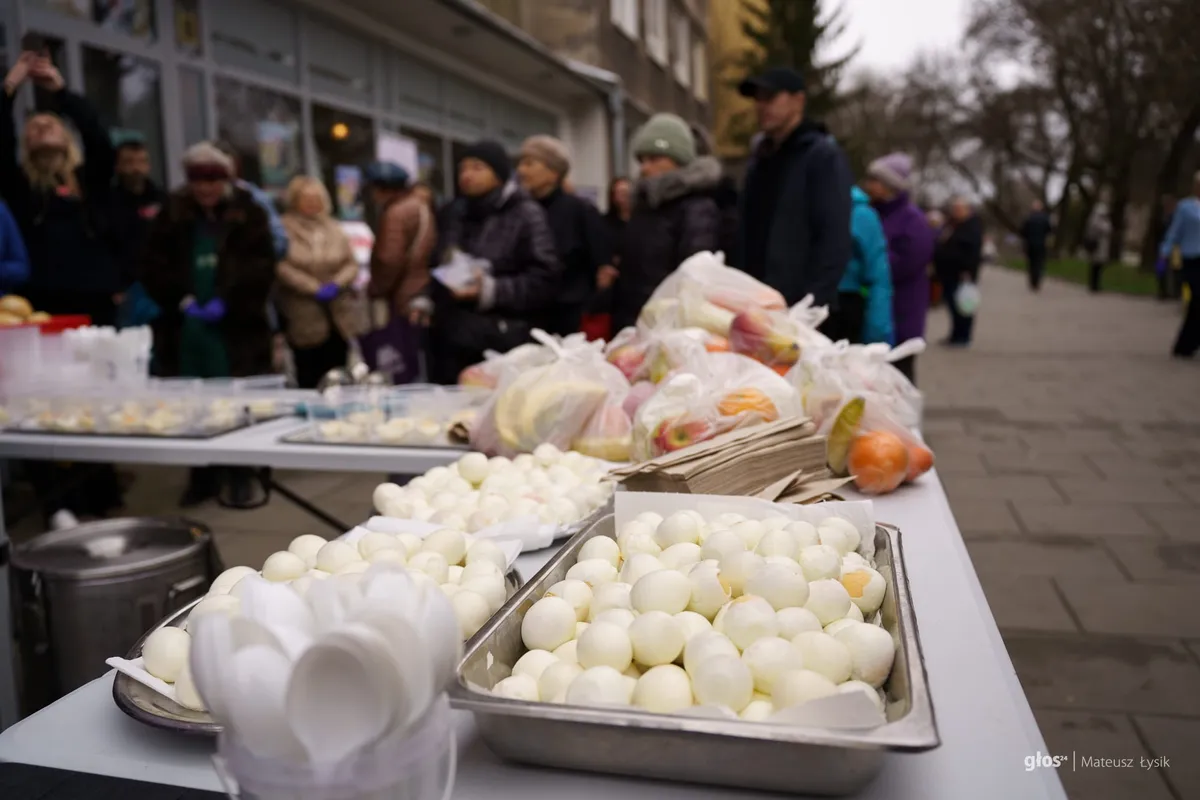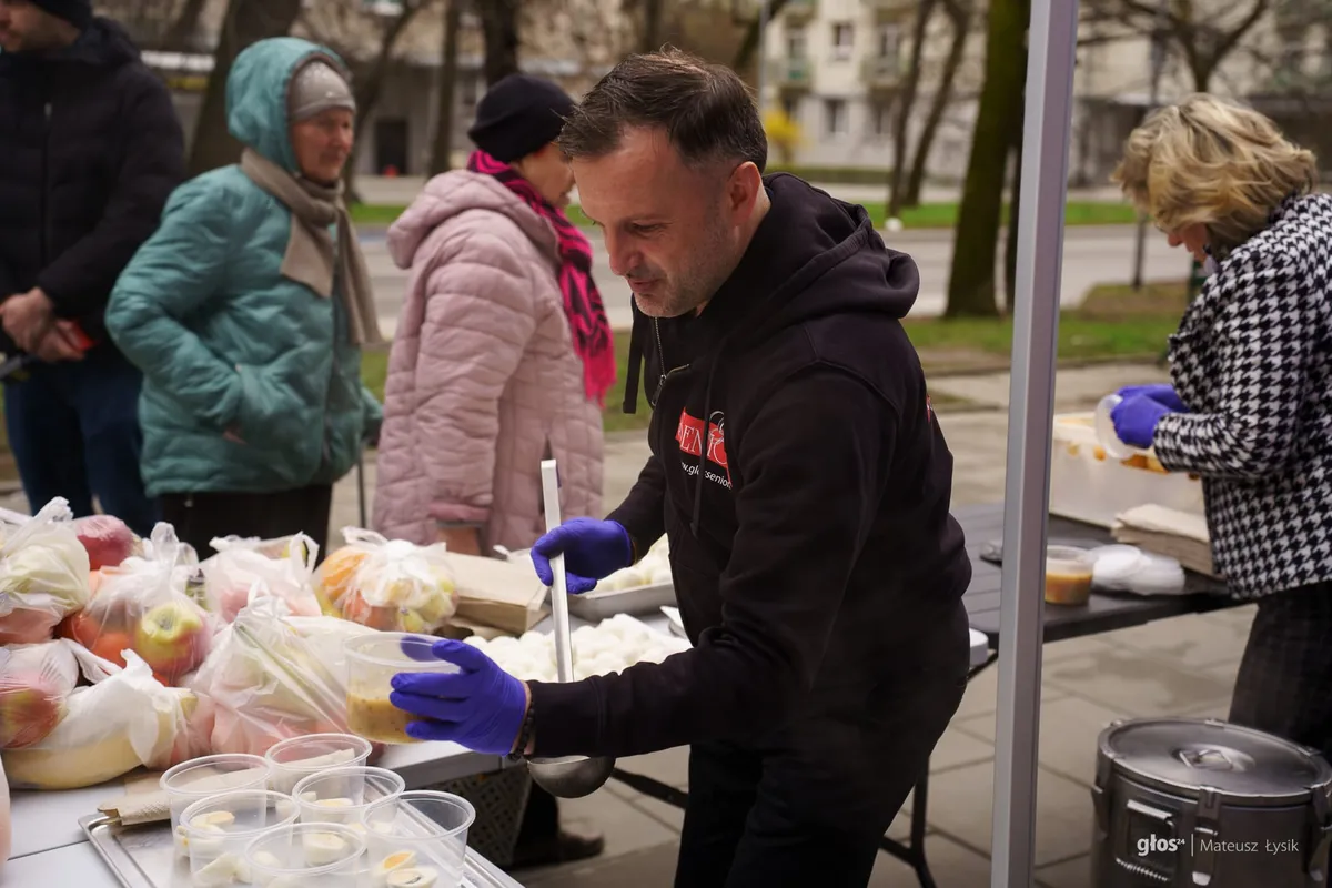 Organizatorzy spędzili godziny, przygotowując wszystko do perfekcji – kroili warzywa, doprawiali zupę i pilnowali, aby każdy szczegół był dopracowany. W powietrzu unosił się aromat domowego żurku, a ciche rozmowy wolontariuszy mieszały się z wymianą uśmiechów. Każdy talerz miał nieść ze sobą troskę i serdeczność, a każdy gest wolontariusza – od podania pojemnika po przyjazne słowo – tworzył wyjątkową atmosferę.